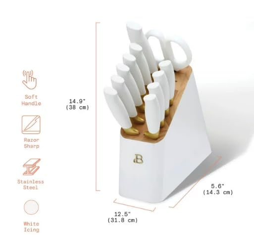 Beautiful 12 Piece Knife Block Set with Soft-Grip Ergonomic Handles