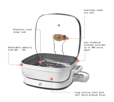 Beautiful 5 in 1 Electric Skillet - Expandable up to 7 Qt with Glass Lid, by Drew Barrymore