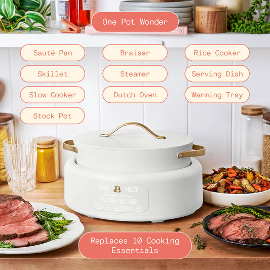 Beautiful 10 in 1 Electric Multi-Cooker, White Icing by Drew Barrymore