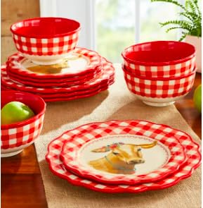 The Pioneer Woman Gingham Red Stoneware 12-Piece Dinnerware Set