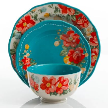 The Pioneer Woman Dinnerware Set Vintage Floral 12-Piece, Teal