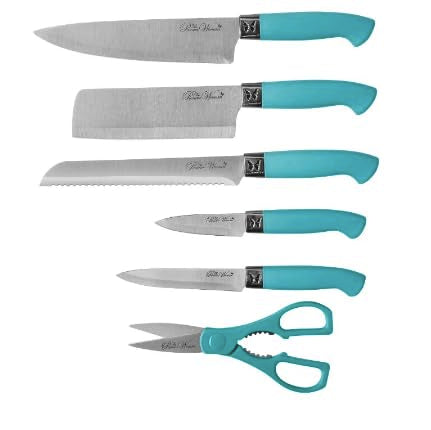 The Pioneer Woman Breezy Blossoms 11-Piece Stainless Steel Knife Block Set, Teal