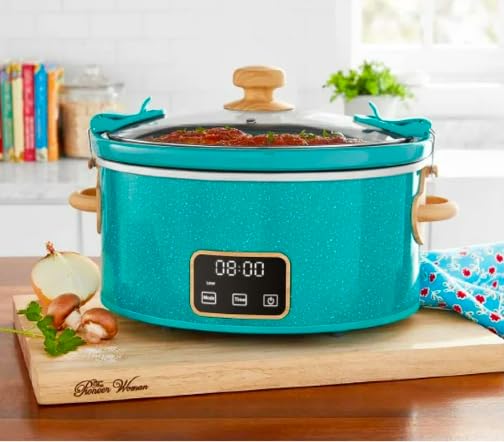 The Pioneer Woman 6 QT Slow Cooker, Locking Lid, Removable Crock, Digital Color Teal