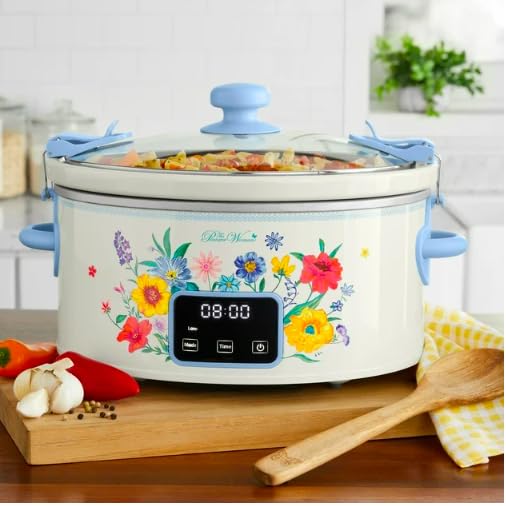 The Pioneer Woman 6 QT Slow Cooker, Locking Lid, Removable Crock, Digital, Brilliant Blooms